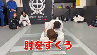 クローズドガードからのバックテイク(肘の制し方)